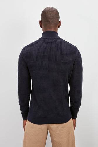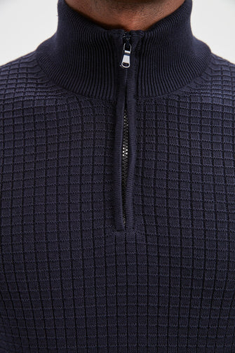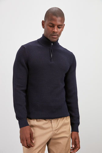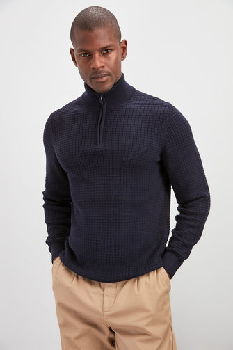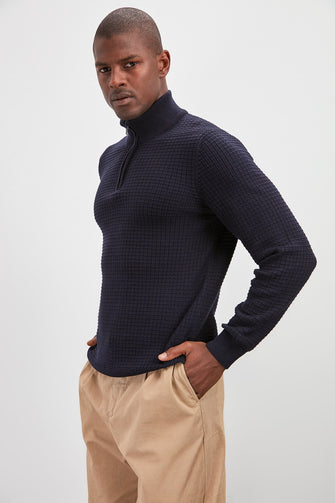 Male Half Turtleneck Zipper Textured Sweater New