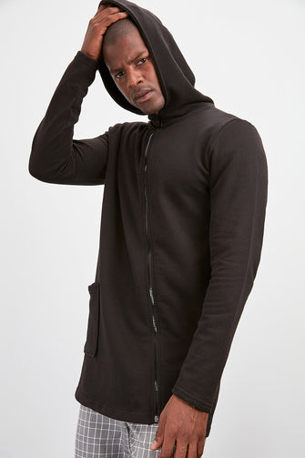 Male Hooded Front Zipper Pocket Detail New-Cardigan