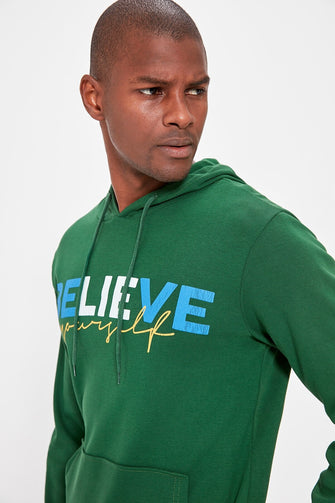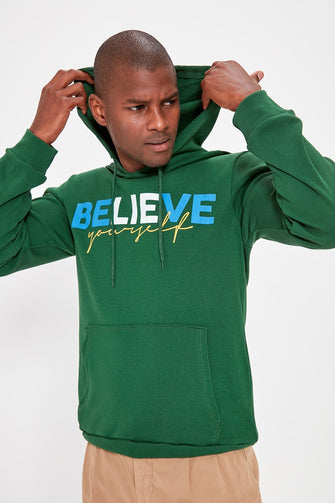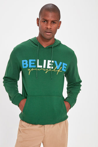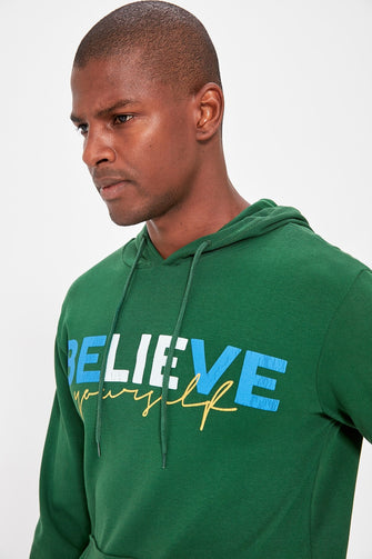 Male Hooded Kangaroo Pocket Printed Thin Fabric T-shirt