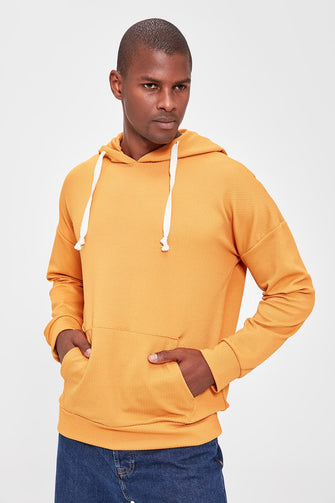 Male Hooded Kangaroo Pocket Textured Sweatshirt