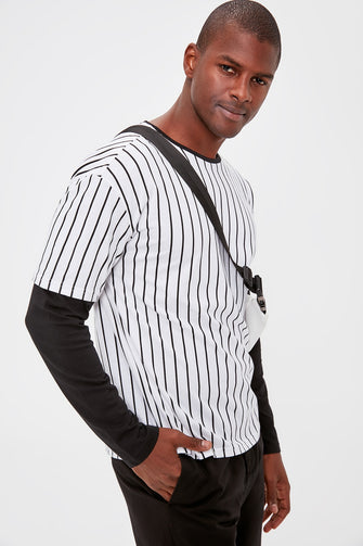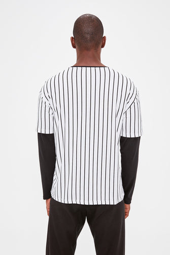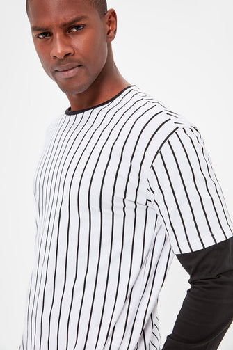Male Internal Sleeve Overhang Striped Long Sleeve New T-Shirt