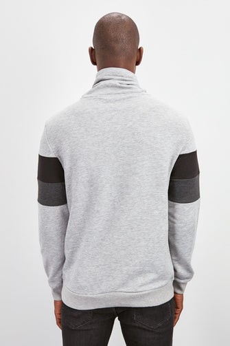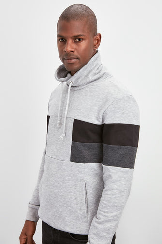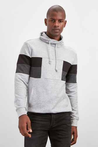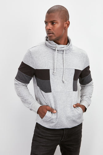 Male Long-Sleeve Funnel Lapel Paneled Kangaroo Pocket Sweatshirt New