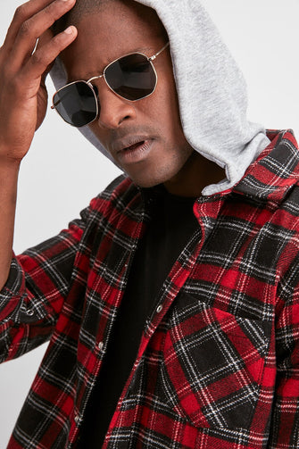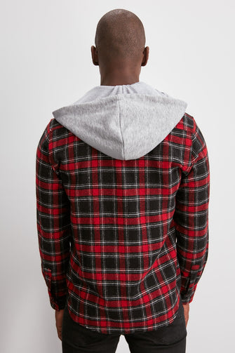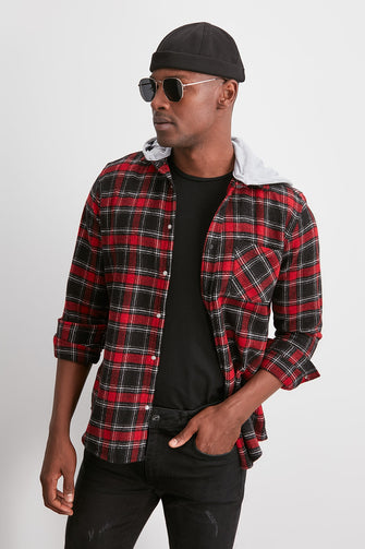 Male Lumberjack Plaid Knitted Hooded Slim Fit Shirt