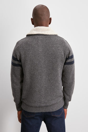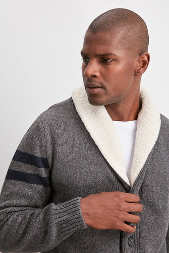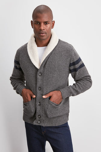 Male Shawl Collar Sleeve Striped Sweater Cardigan
