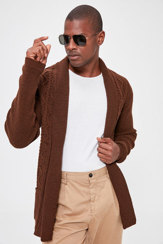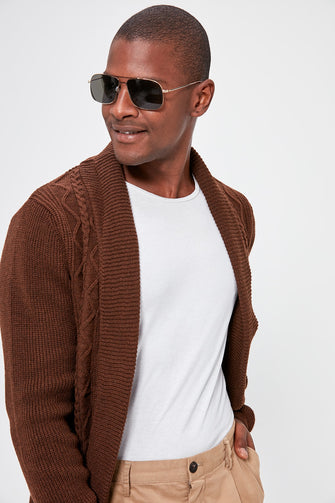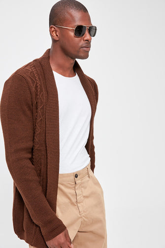 Male Shawl Collar Textured Sweater Cardigan New