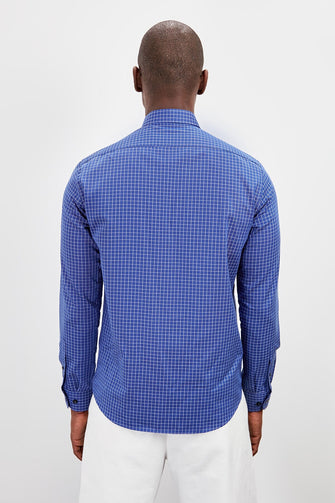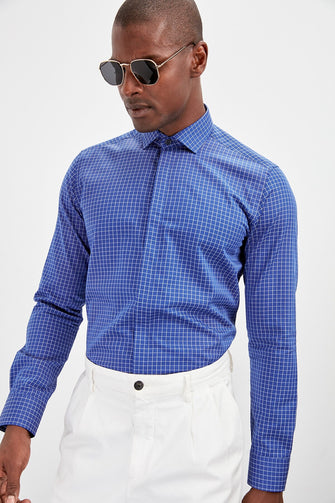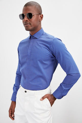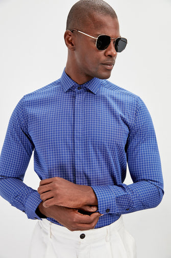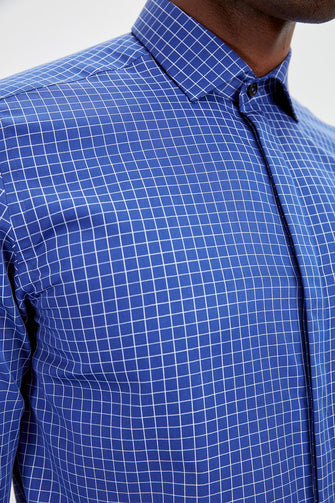 Male Slim Fit Half Italian Collar Hidden Plaid New Shirt