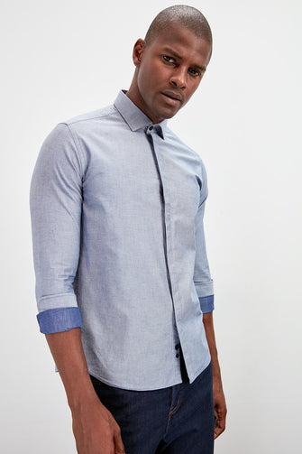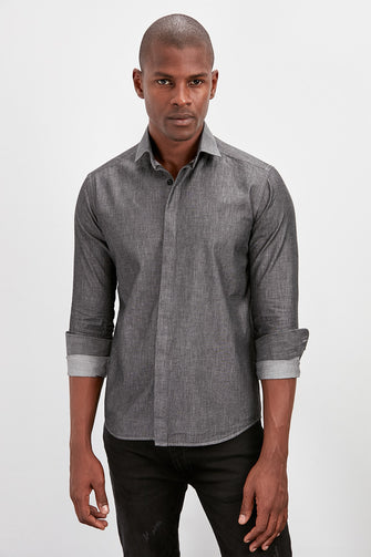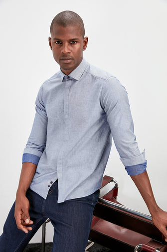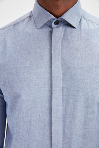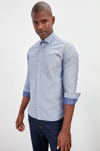 Male Slim Fit Half Italian Collar Hidden Placket Long Sleeve New Shirts