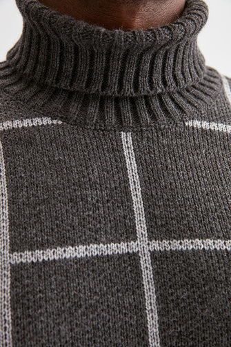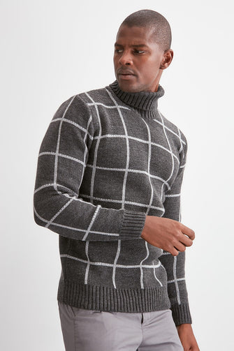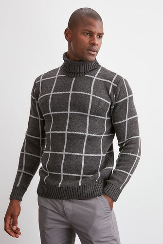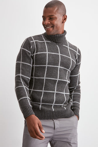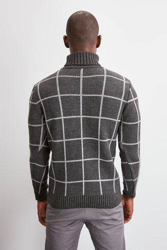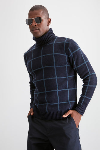 Male Turtleneck Long-Sleeved Checkered Sweater