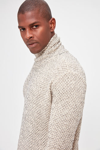Male Turtleneck Textured Knit Sweater