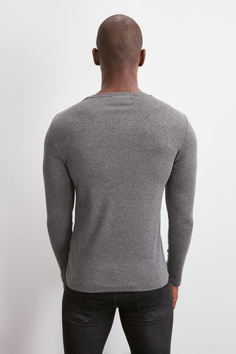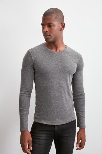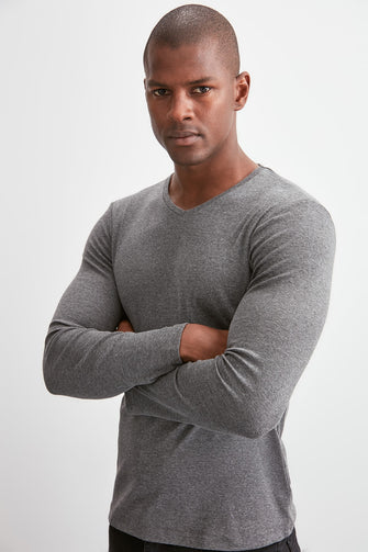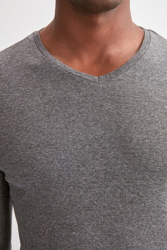 Male V-Neck Fabric Basic Long-Sleeve T-Shirt