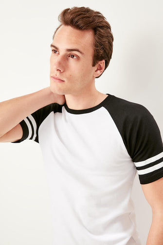 MAN Black Male Handle Stripe Cycling Neck T Shirt