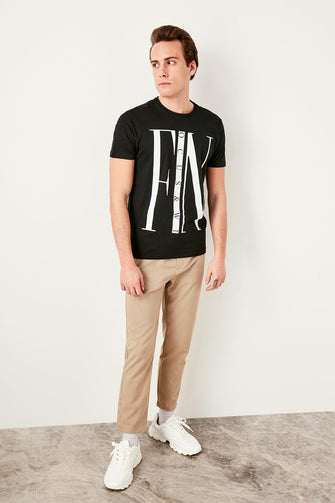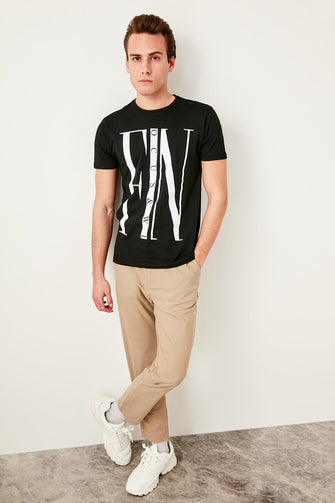 MAN Black Men Slim Fit Printed Bicycle Neck T Shirt