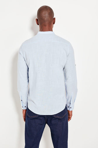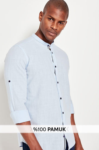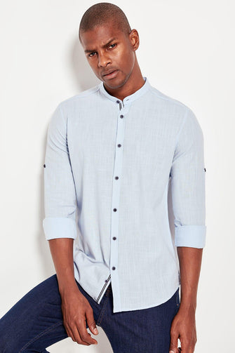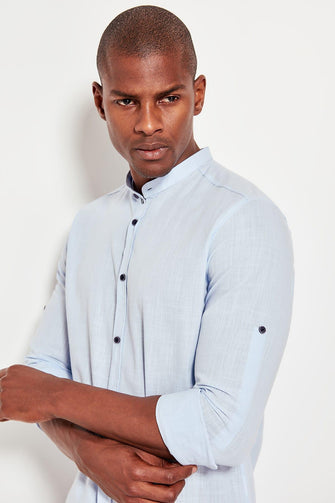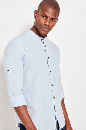 MAN Blue Men 'S Crew Neck Long Sleeve Basic Slim Fit Shirt