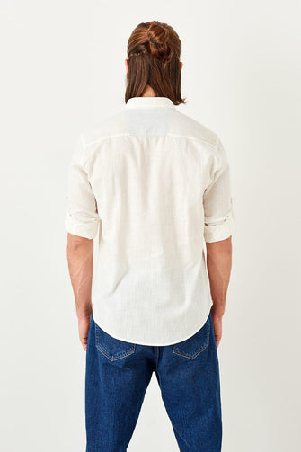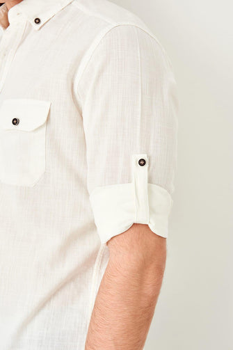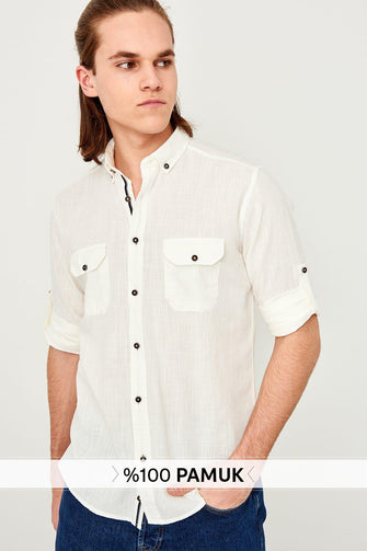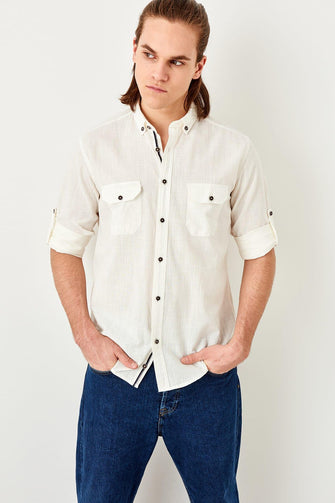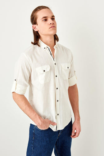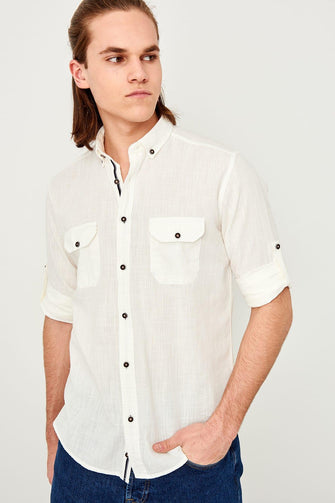 MAN Ecru Men Epaulets 100 Cotton Slim Fit Shirt