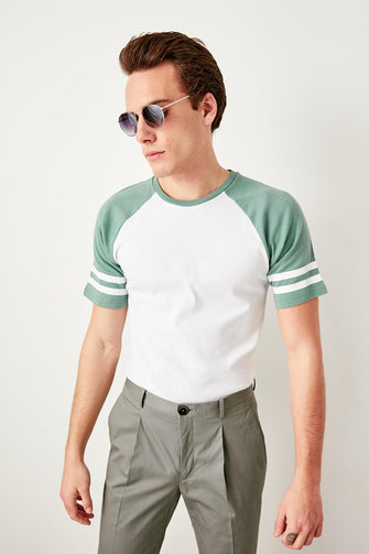 MAN Green Male Handle Stripe Cycling Neck T Shirt