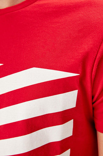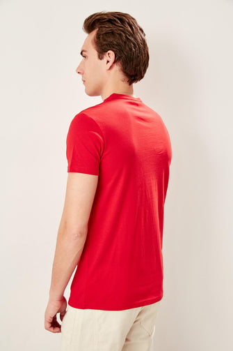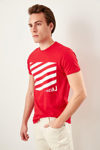 MAN Male Red Slim Fit Printed Bicycle Neck T Shirt