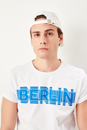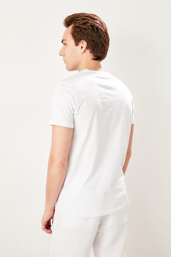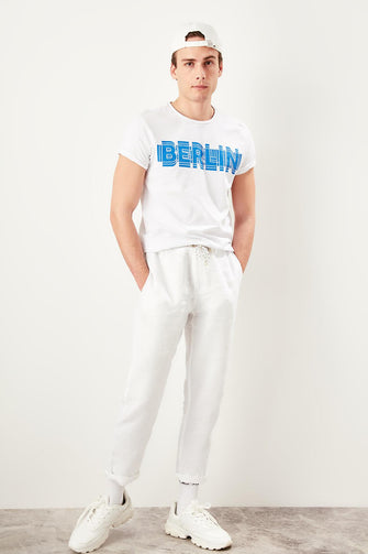 MAN Male White Slim Fit Printed Bicycle Neck T Shirt