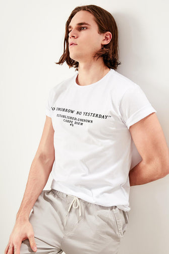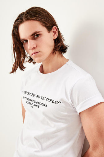 MAN White Male Slim Fit Printed Bicycle Neck T Shirt