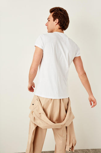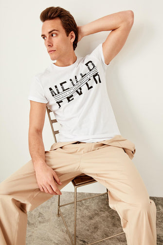 MAN White Male Slim Fit Printed Bicycle Neck T Shirt