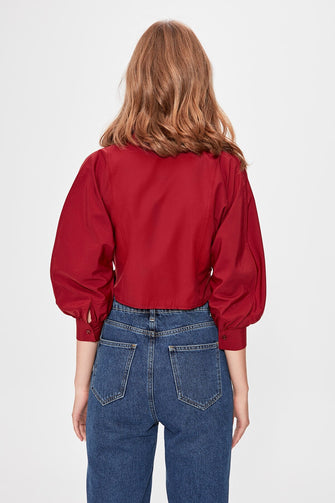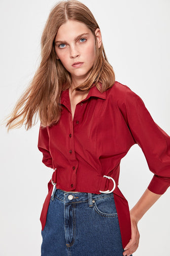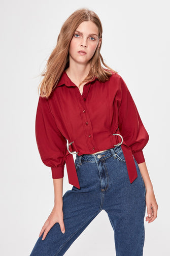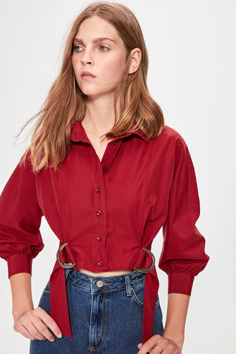 Maroon Coupling Detailed Crop Top Blouse