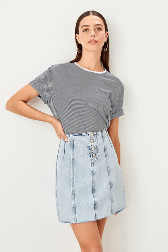 Trendyol Mavi Button Detailed Denim Skirt TWOSS19LR0339
