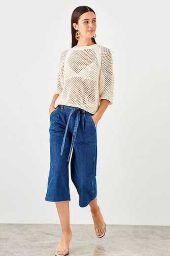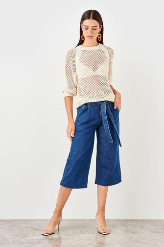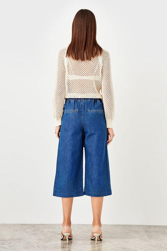 Elasticized Waistband Detail High Waist Culotte Jeans