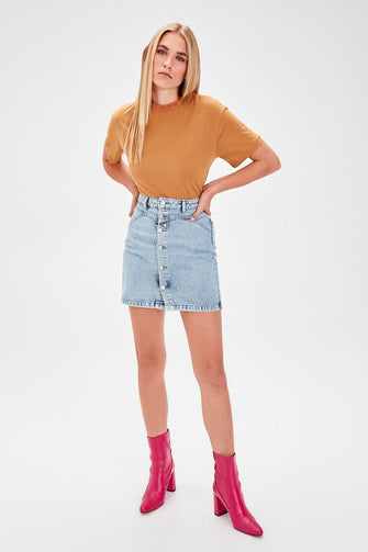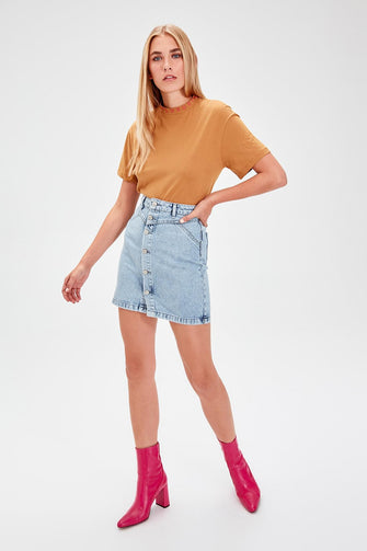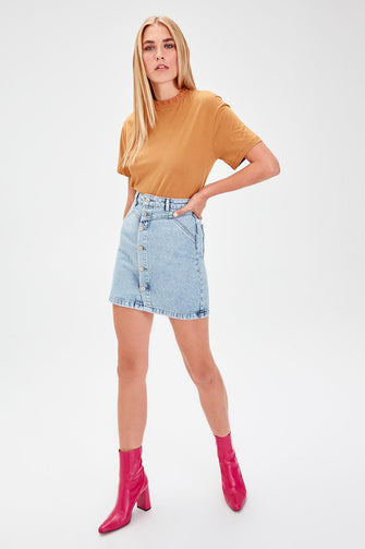 Trendyol Mavi Front Button Denim Skirt TWOAW20ET0068