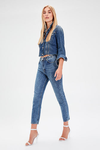 Trendyol Mavi Normal Waist Mom Jeans TWOAW20JE0053