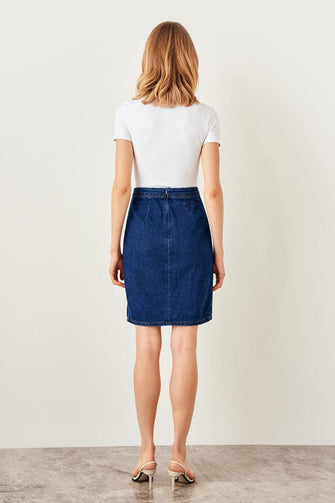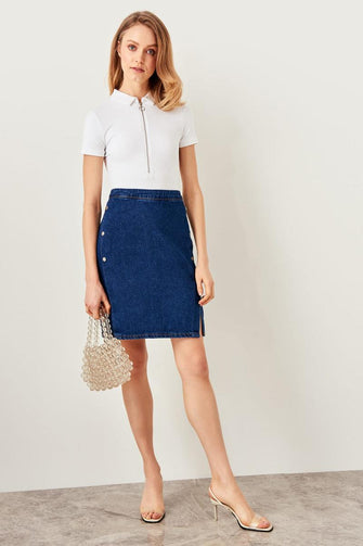 Trendyol Mavi Slits Denim High Waist Short Skirt TWOSS19TQ0009