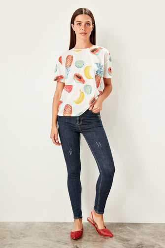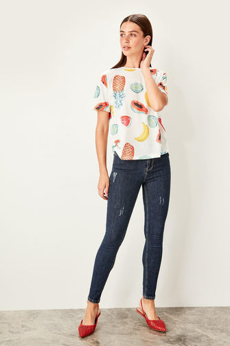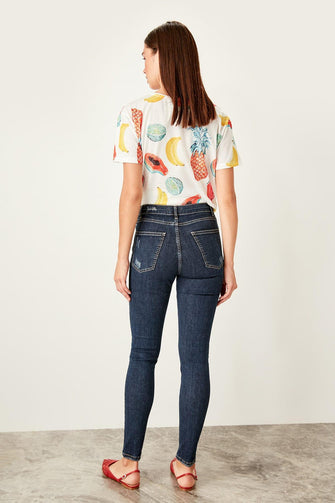 - Button and Zipper Closure, Yıpratmalı, High Waist, Skinny