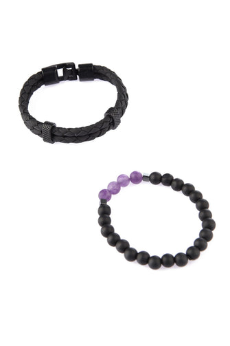 Men 'Natural Stone and Leather Hook Bijouterie Bracelet