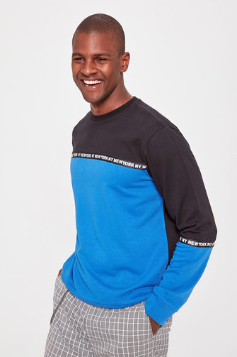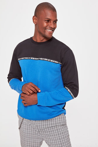 Men Long Sleeve Cycling Collar Stripe Panelli Sweatshirts New