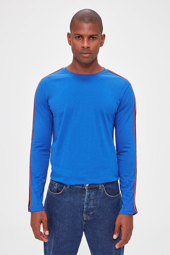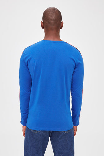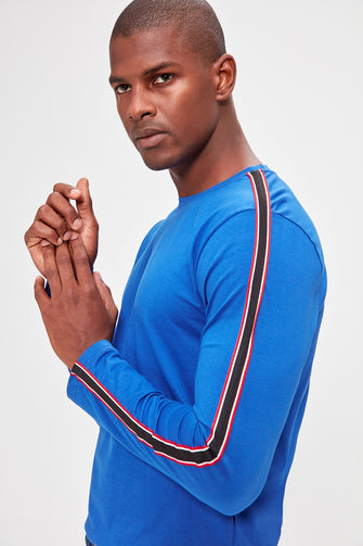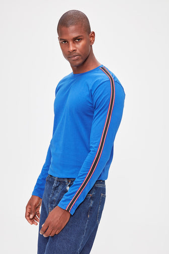 Men Long Sleeve Cycling Neck Handle Stripe T Shirt