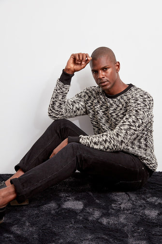 Men Long Sleeve Cycling Neck Knitted Pullover