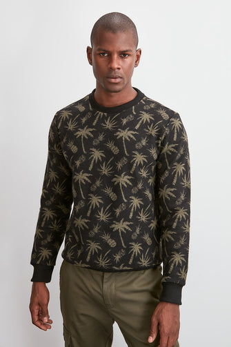 Men Long Sleeve Cycling Neck Printed Sweater
