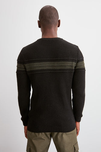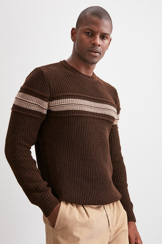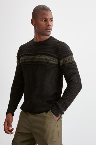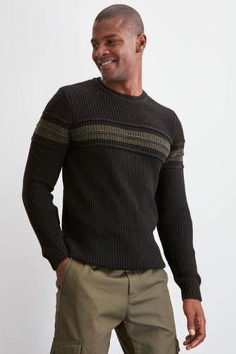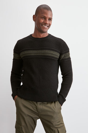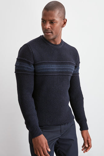 Men Long Sleeve Cycling Neck Ribbed Sweater