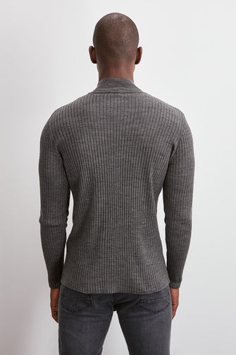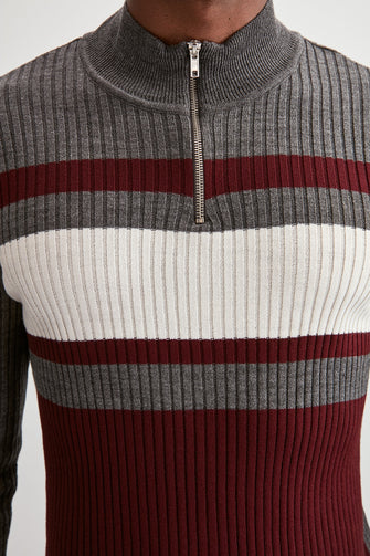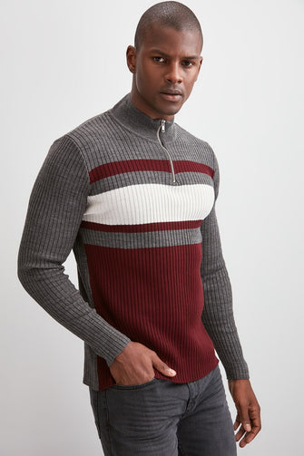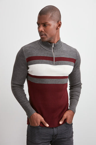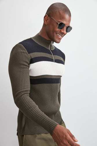 Men Panelled Half Turtleneck Zipper Collar Sweater