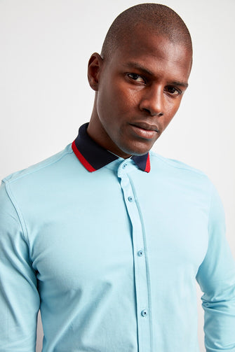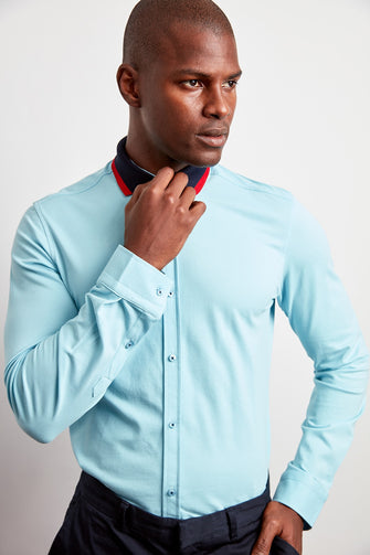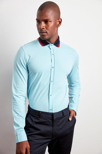 Men 'S Shirt Collar Sweater Band Long Sleeve Extra Slim Fit Shirt