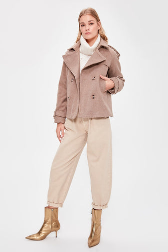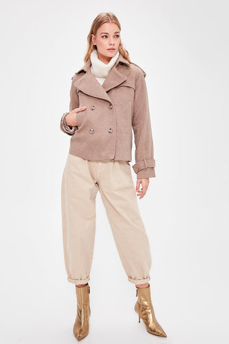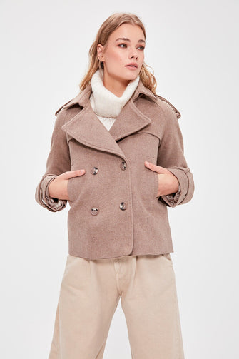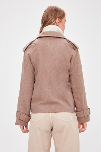 Trendyol Mink Epaulette Detailed Front Button Stamp Coat TWOAW20KB0026