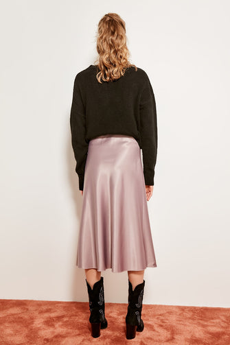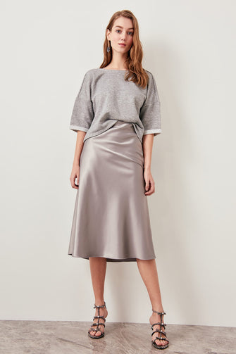 Mink Mustard Silk Satin High-waist Women Knee-length Skirt Chic Style