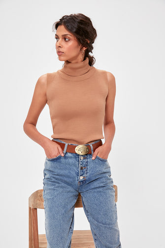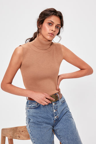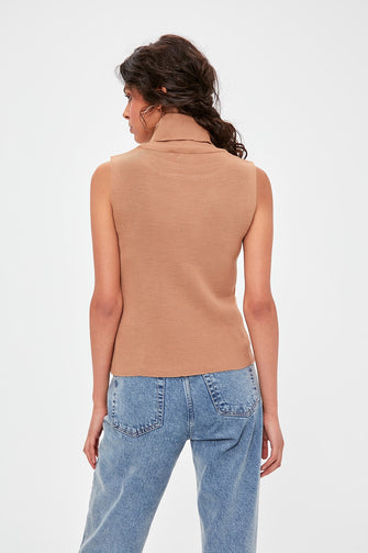Mink Sleeveless Turtleneck Knitwear Blouse