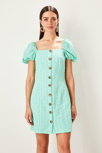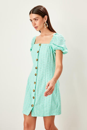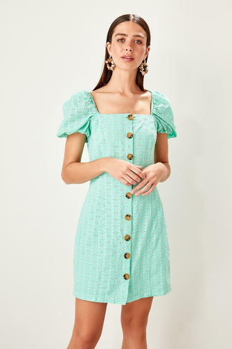 Mint Bone Button Detail Dress