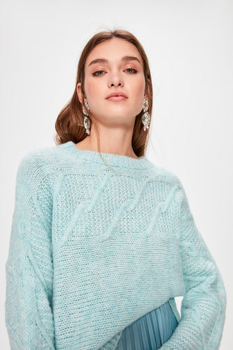Trendyol Mint Mesh Detailed Knitwear Sweater TWOAW20KZ0628