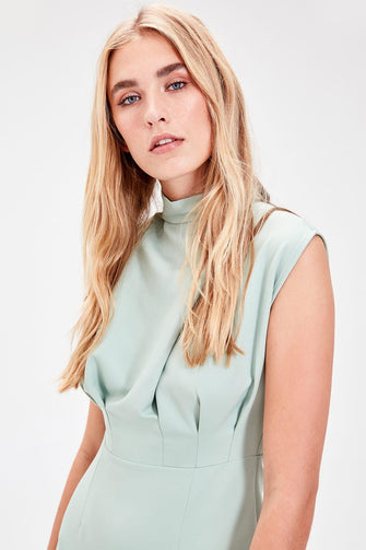 Mint Sheer Neckline Dress