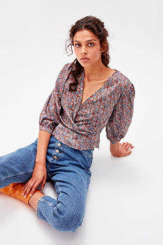 Multicolour Lacing Detailed Crop Top Blouse