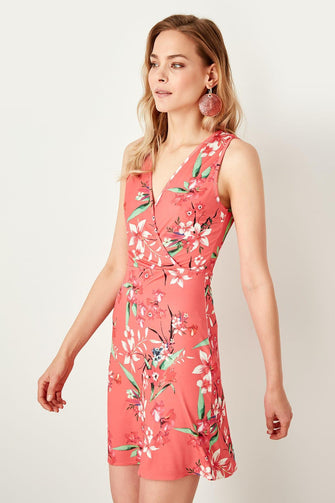 Multicolour Pattern Double Breasted Collar Knitted Dress