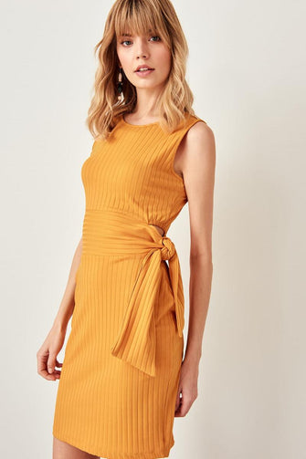 Mustard Detail at Waist Knit Dress