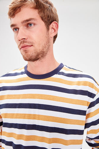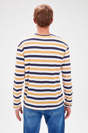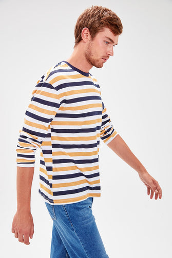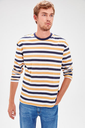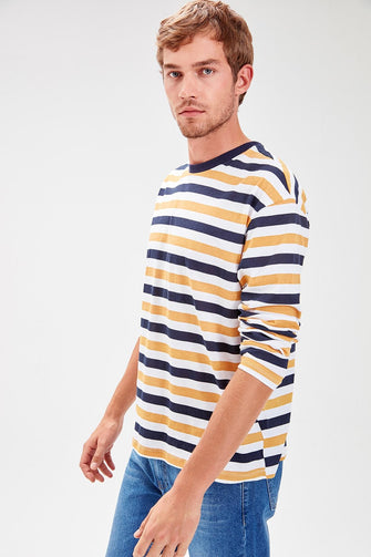 Mustard Men Long Sleeve Cycling Neck Stripe T-Shirt