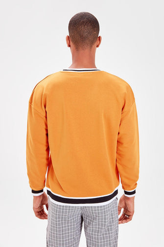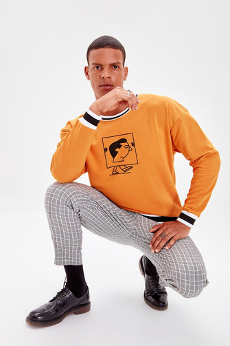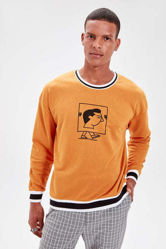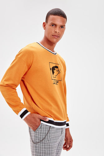 Mustard New Men 'S Printed Bike Collar Sweatshirt