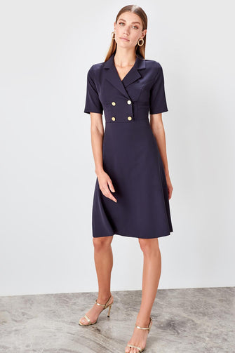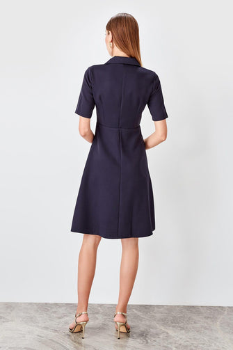 Navy Blue Button Detail Dress